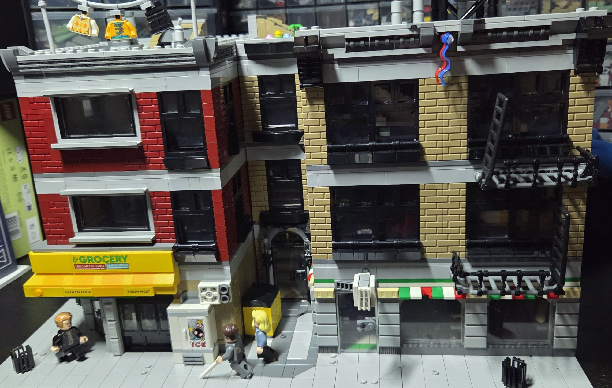 On aura, la tour Avenger, le Daily Bugle, l’école du professeur Xavier, le restaurant chinois, le Saint des Saints, l’immeuble de Peter Parker (MOC), l’immeuble de Matt Murdock (MOC), la boutique hôtel et le Tudor corner pour les bâtiments principaux.