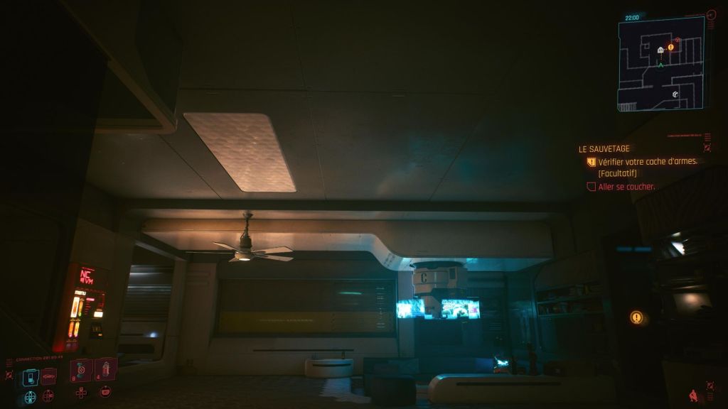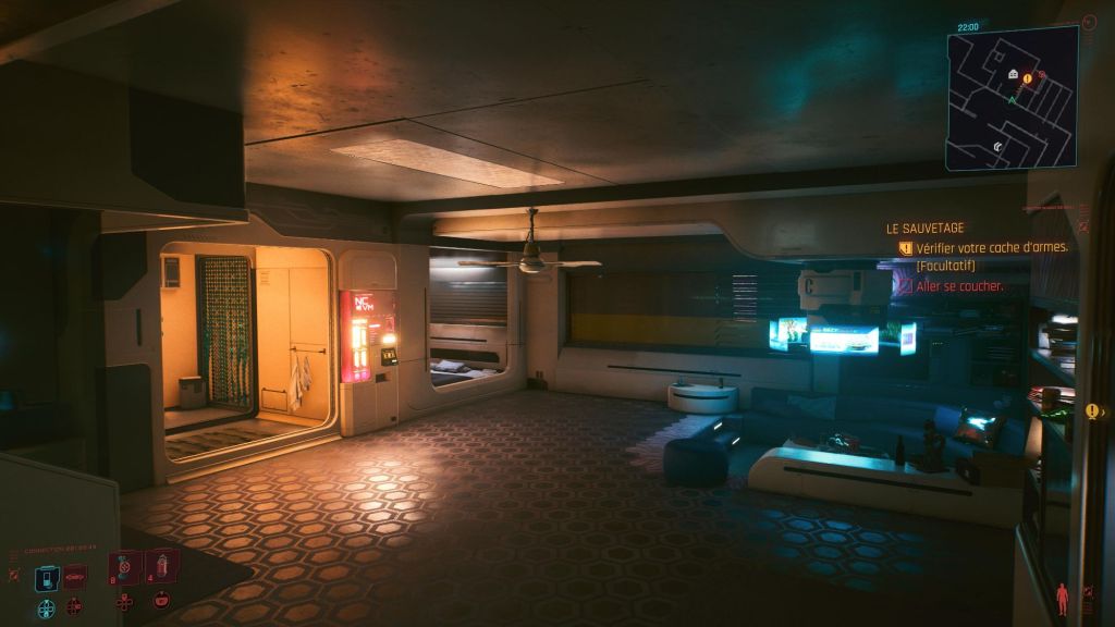 Je suis donc parti sur l’appartement du personnage principal, V. Il est classe, pas trop grand, et ça me semblait facile à réaliser ! Pas si simple au final avec les différents niveaux de sol et variations de mur ! Putain d’angles arrondis !!!