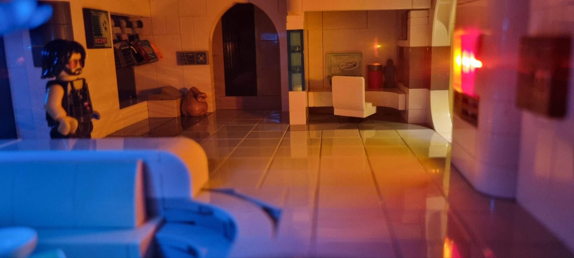 Un des plus gros challenges a été de rajouter la lumière dans le set. Première fois que je m’y mets vraiment, le résultat change du tout au tout une fois allumé et ça vaut vraiment le coup. Surtout pour ce thème et ambiance, le jeu des lumières étant super important. Apporter la même chaleur que sur le jeu n’est pas facile.
