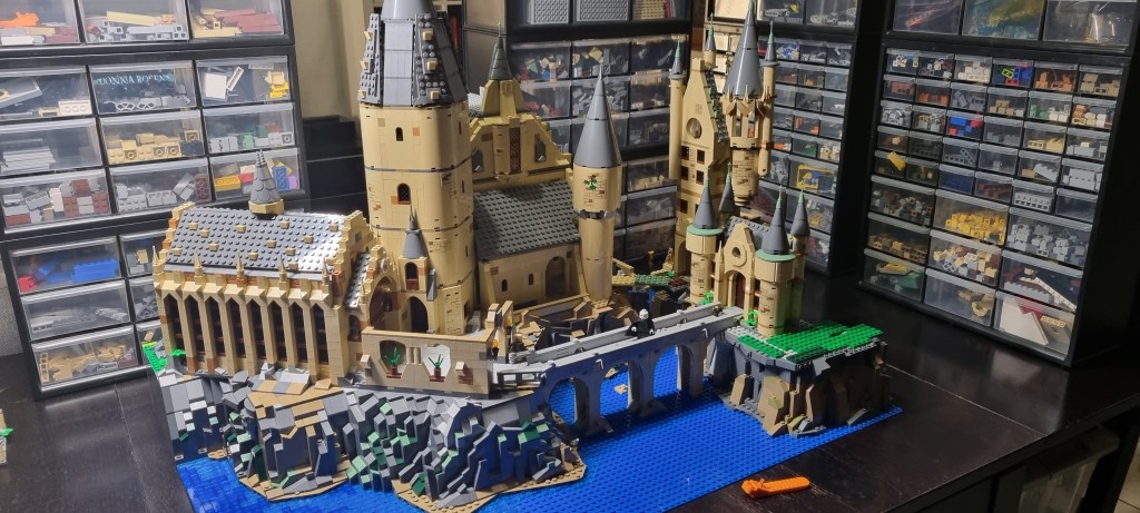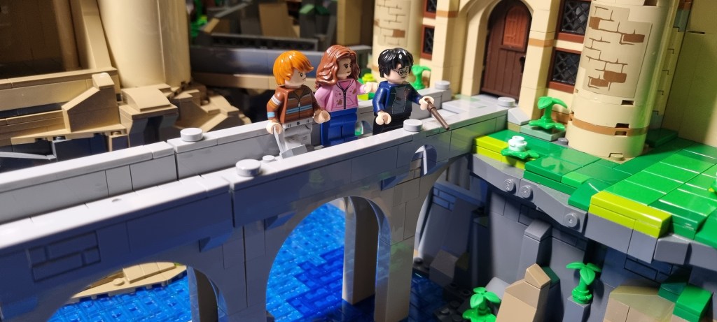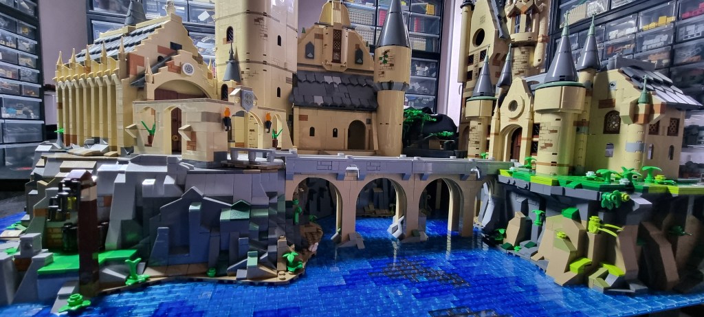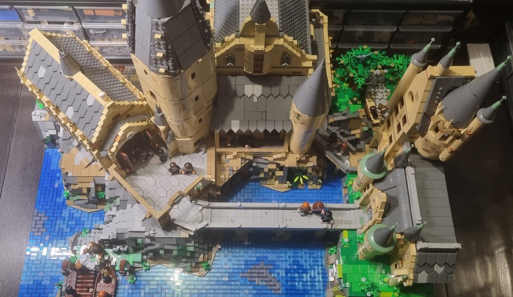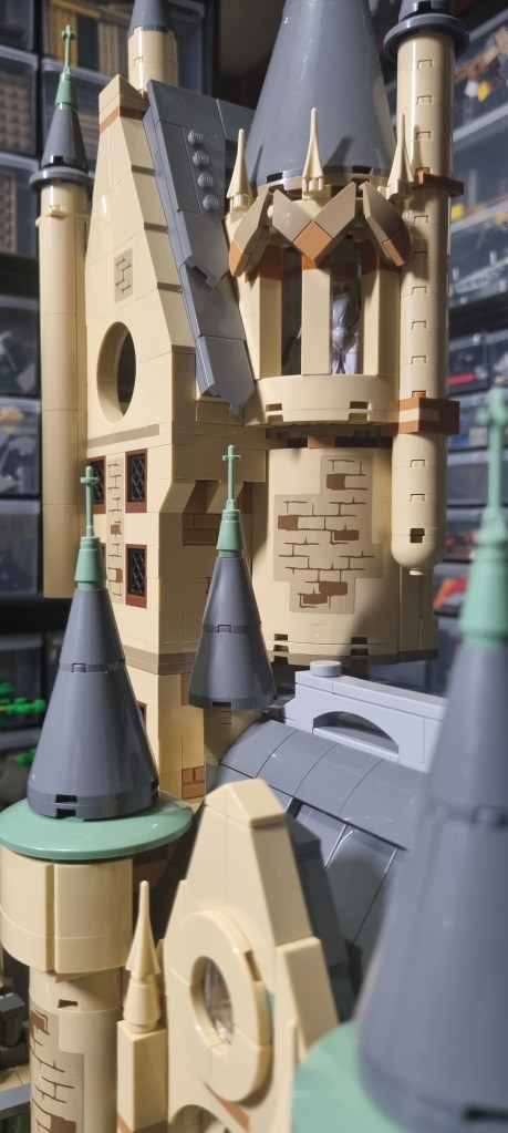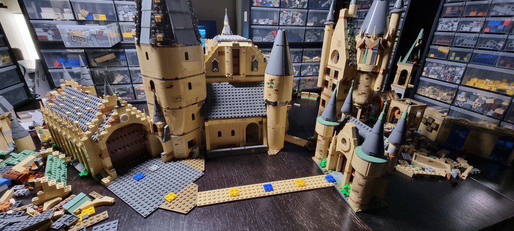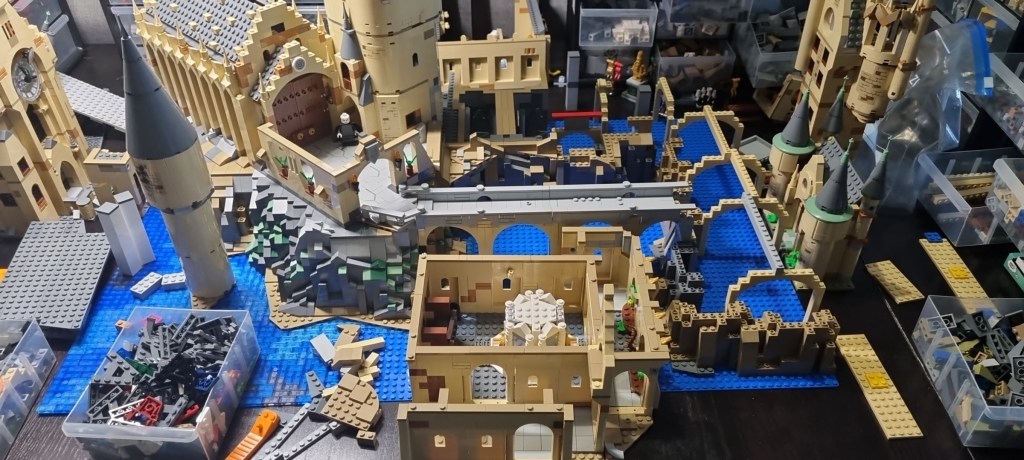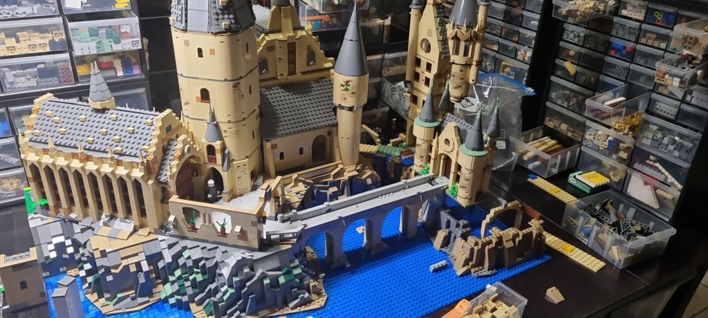 Pour ce qui est de l’inspiration générale Lego avait déjà fait une version du château mais pas en minifigscale (à l’échelle des personnages). Et même sur le net les plans et représentations ne sont jamais les mêmes… L’idéal aurait été de le reproduire à l’échelle minifig, mais là, c’était hors budget et hors place ! Mais ça aurait été chouette ^^ Sinon les films et le dernier jeu « Hogwarts Legacy » ont aidé à mieux se représenter le tout car il y a pas mal de versions différentes. Et il ne fallait pas trop compter sur les set de base chez LEGO pour s’emboiter et faire un joli château directement ! D’ailleurs les version de 2024 permettent mieux de le faire, sans être au top non plus.