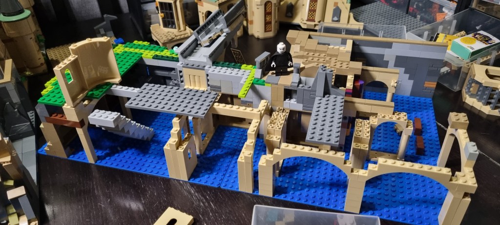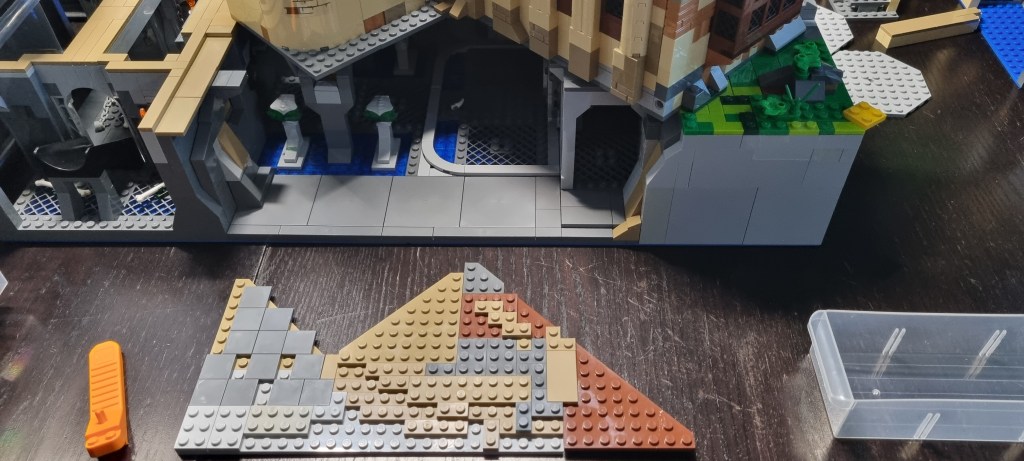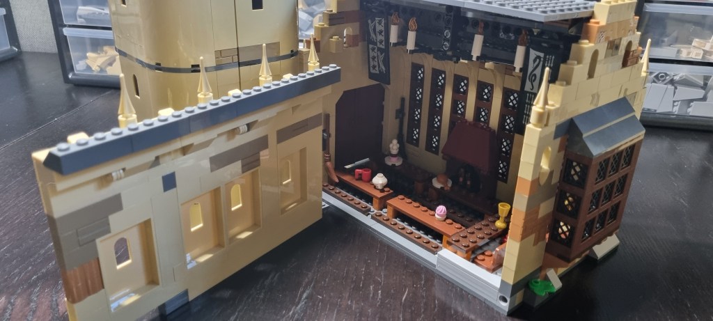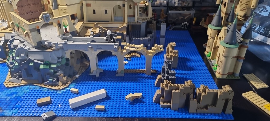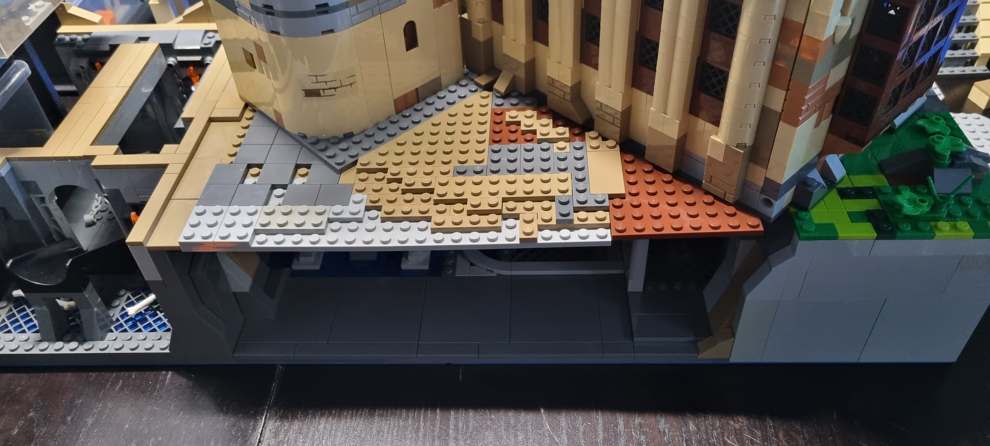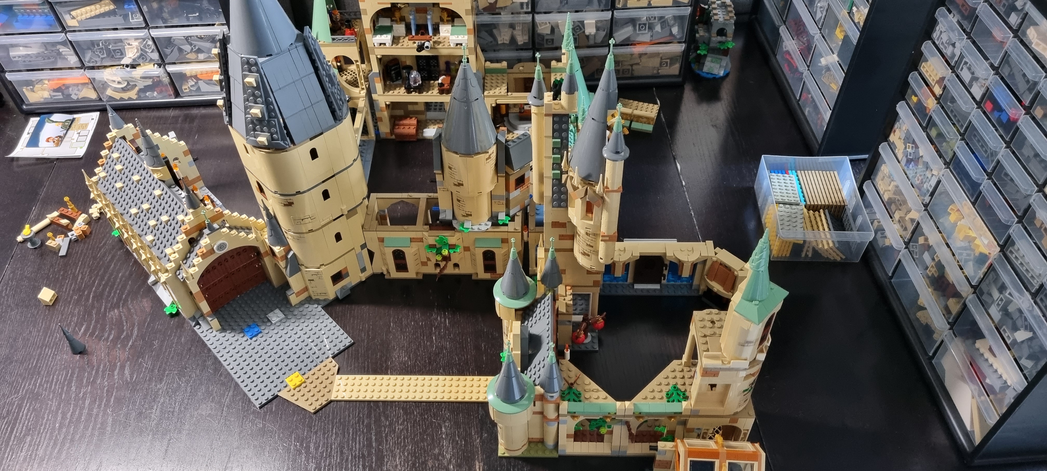 Pour ce qui est de l’inspiration générale Lego avait déjà fait une version du château mais pas en minifigscale (à l’échelle des personnages). Et même sur le net les plans et représentations ne sont jamais les mêmes… L’idéal aurait été de le reproduire à l’échelle minifig, mais là, c’était hors budget et hors place ! Mais ça aurait été chouette ^^ Sinon les films et le dernier jeu « Hogwarts Legacy » ont aidé à mieux se représenter le tout car il y a pas mal de versions différentes. Et il ne fallait pas trop compter sur les set de base chez LEGO pour s’emboiter et faire un joli château directement ! D’ailleurs les version de 2024 permettent mieux de le faire, sans être au top non plus.