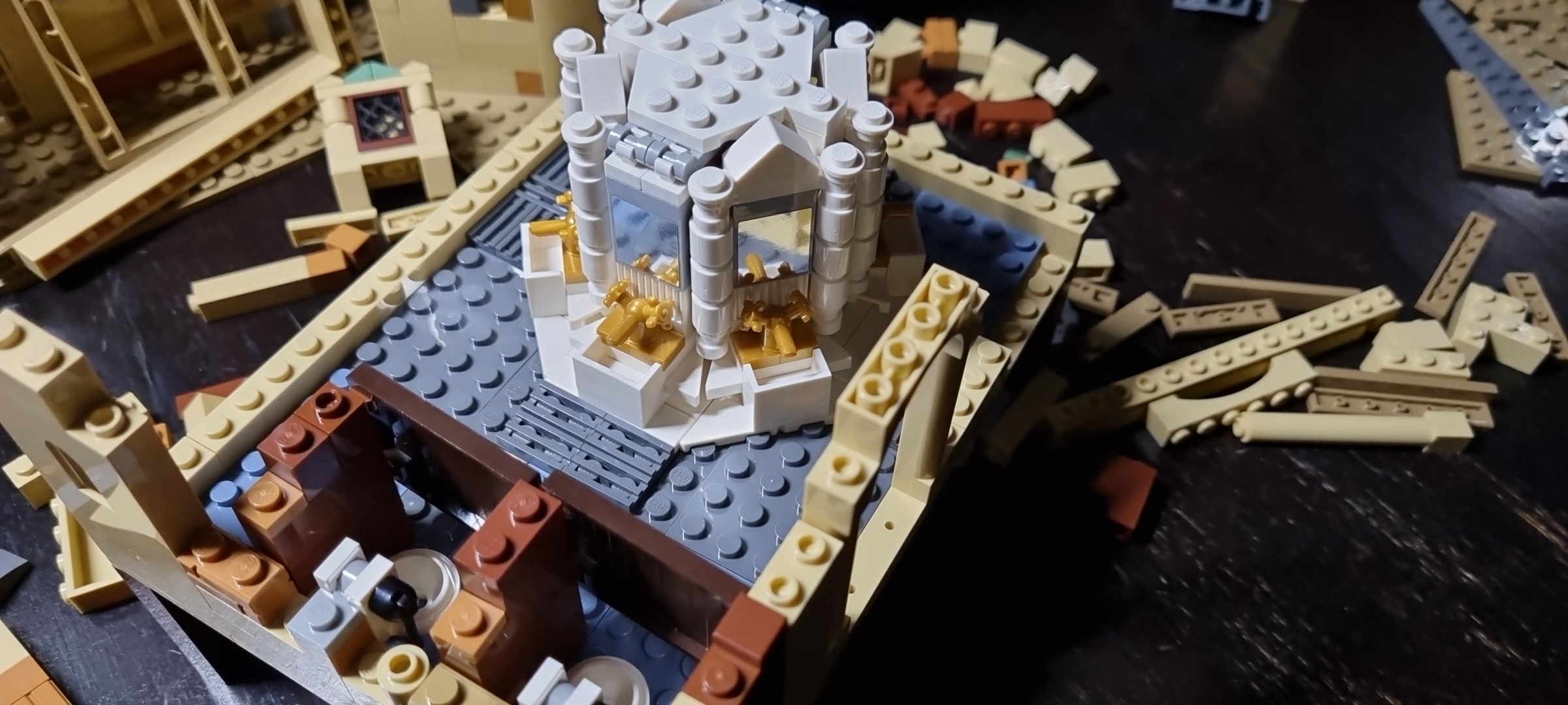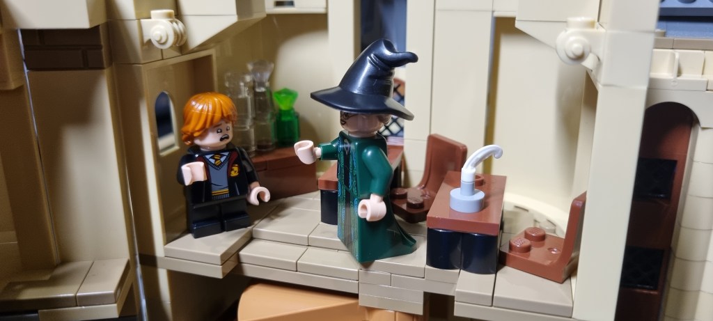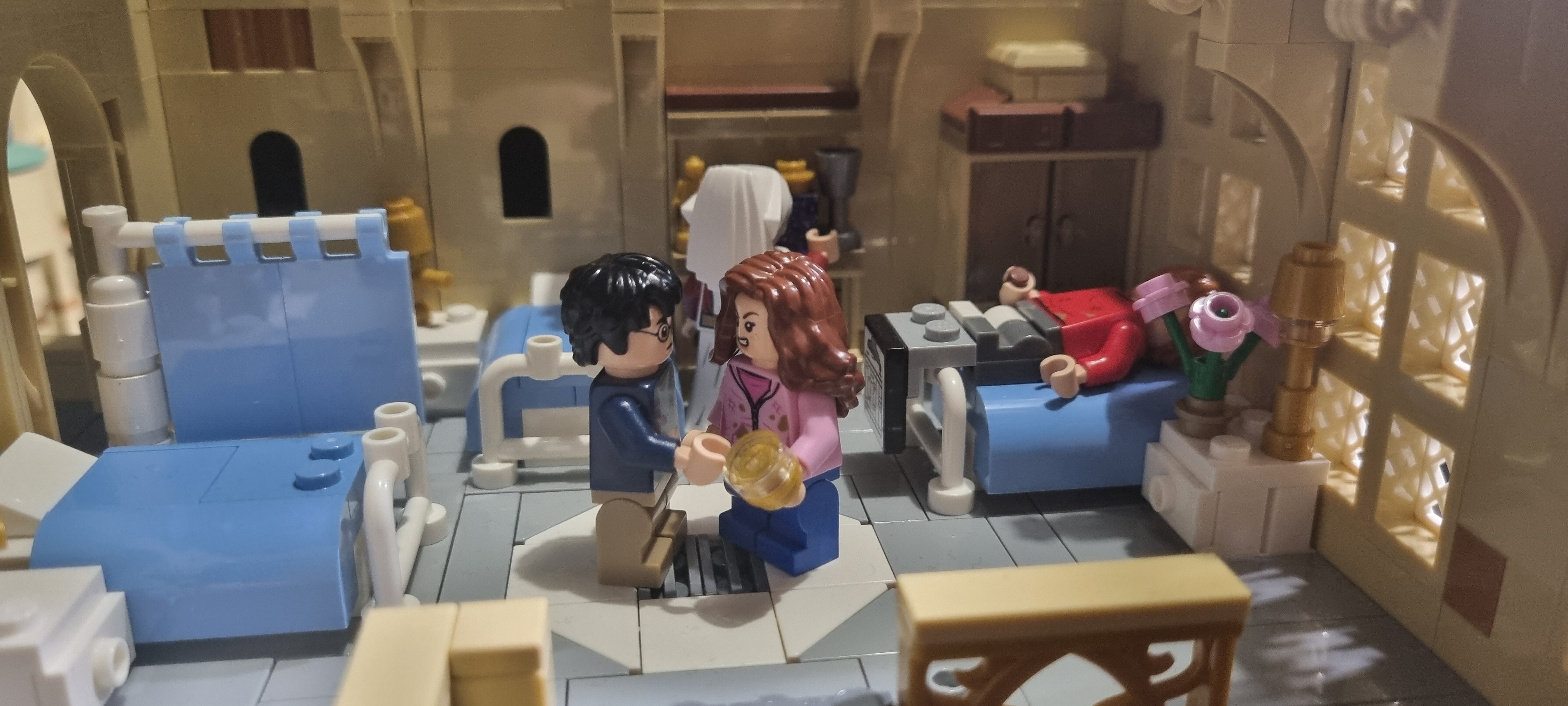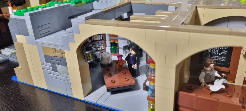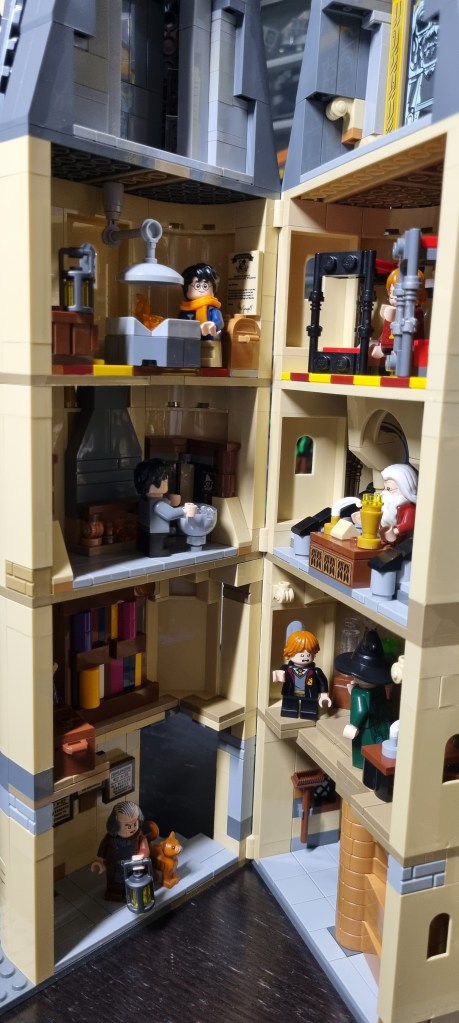 Premièrement c’est fait à partir des set déjà existants d’Harry Potter, la chambre des secrets, la salle sur demande, la tour d’astronomie, la tour de l’horloge, l’infirmerie, le grand hall, les différents livres des maisons, le bureau de Dumbledore, les toilettes du troll au RDC(x2). Certains sont presque tel quel puis d’autres ont été entièrement améliorés ou refaits pour être incorporés comme je le voulais.