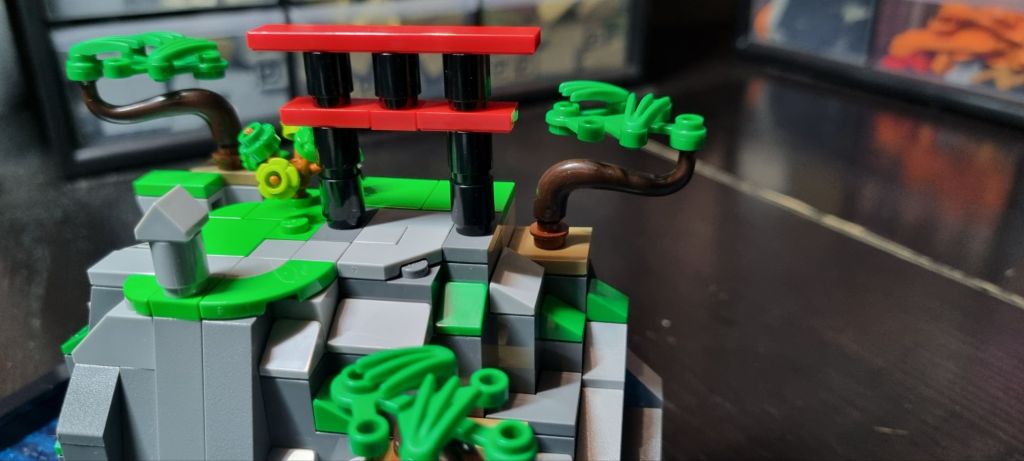 Après comme souvent, je vois la place requise, puis j’évalue la taille globale de ce qui est à présenter. Une fois le bateau et la colline avec le Tori placés, le reste n’était pas compliqué à monter.