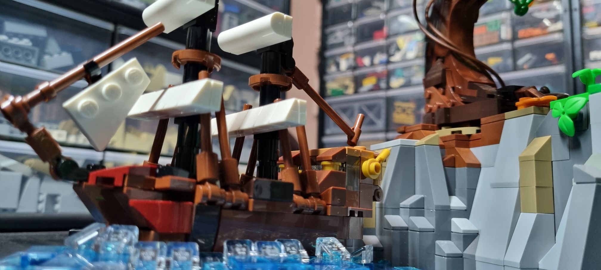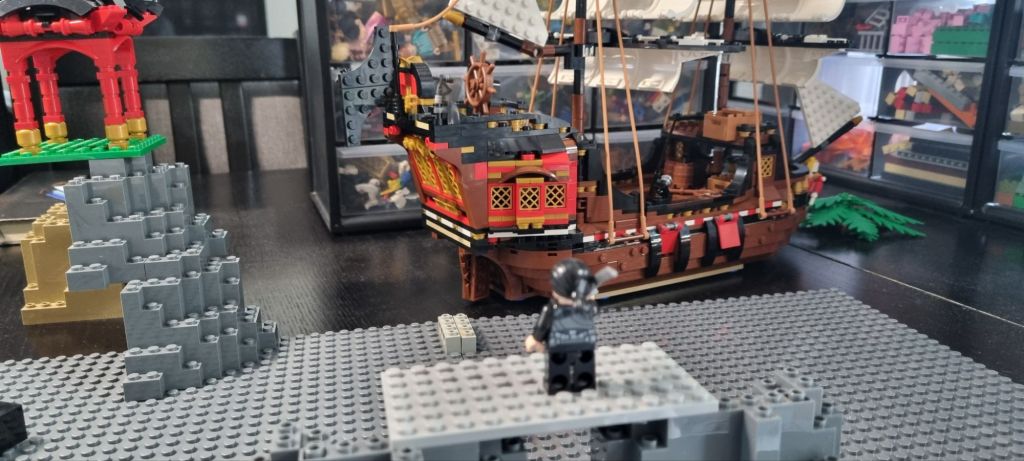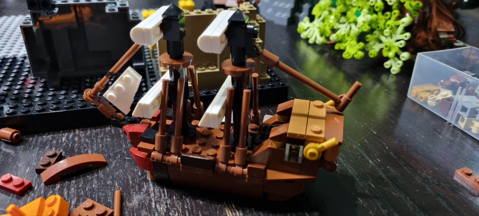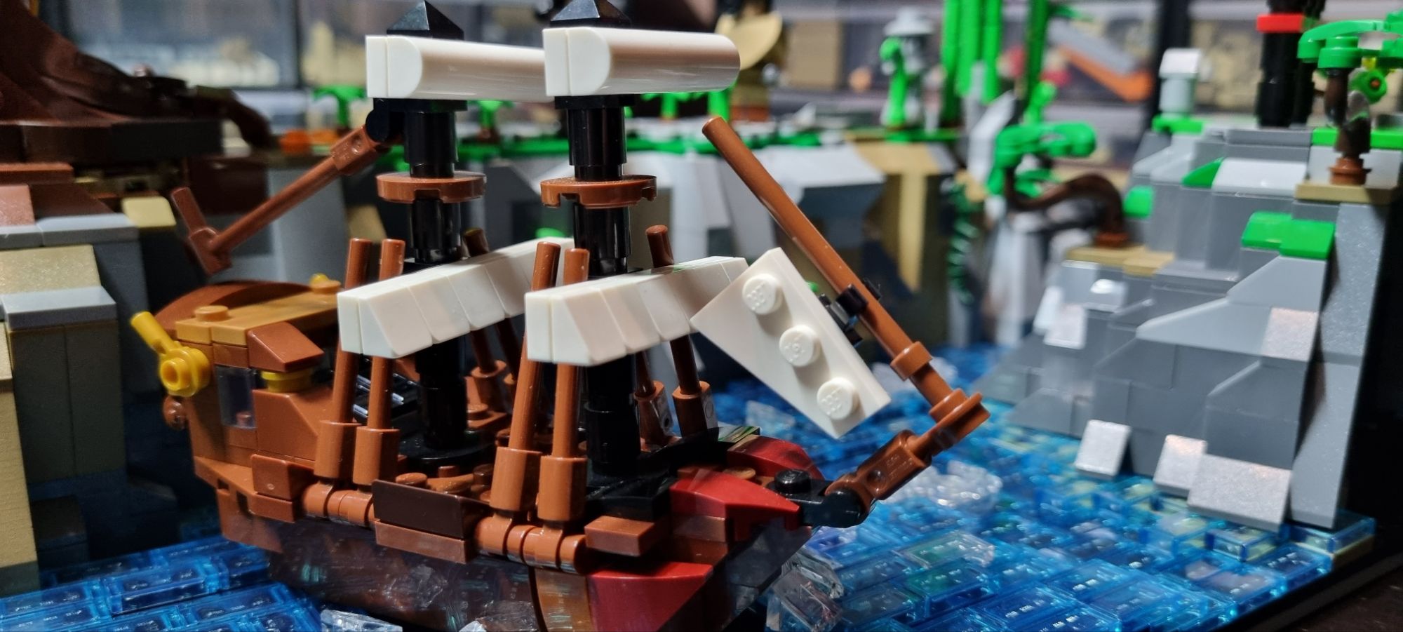 Pour la partie making-of, rien de compliqué dans ce MOC. Le bateau ne m’a pas pris trop de temps, il s’est presque fait tout seul, mais j’avais déjà bien en tête un autre modèle que j’avais custom juste avant (il sera d’ailleurs dans un futur MOC, un gros projet qui se prépare).